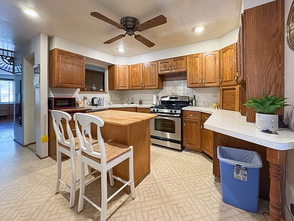 Opportunity knocks! Estate property. Sold as-is. Excellent location ! Lovely home sits on a deep fenced lot with a large 2 car garage off the back. Mature landscaping and walkways bring you to the entry and into the large living room with a picture window and a hardwood floor. The spacious eat in kitchen has an island, plenty of cabinets and all appliances. Adjacent is the dining room with a bright window and a storage closet. Off the kitchen sits a 3 season room for private meals, relaxation and entertaining. 2 bright bedrooms and 1 full bath finish the first floor. The basement is partially finished with work rooms and a full bath. **There is access up the stairway to a full attic. It can be shown by appointment and a signed release. *** 2024 - NEW Siding, Fascia, Soffits + Gutters Located just minutes from vibrant downtown Westmont, the Metra station, schools, parks, restaurants, and shopping.