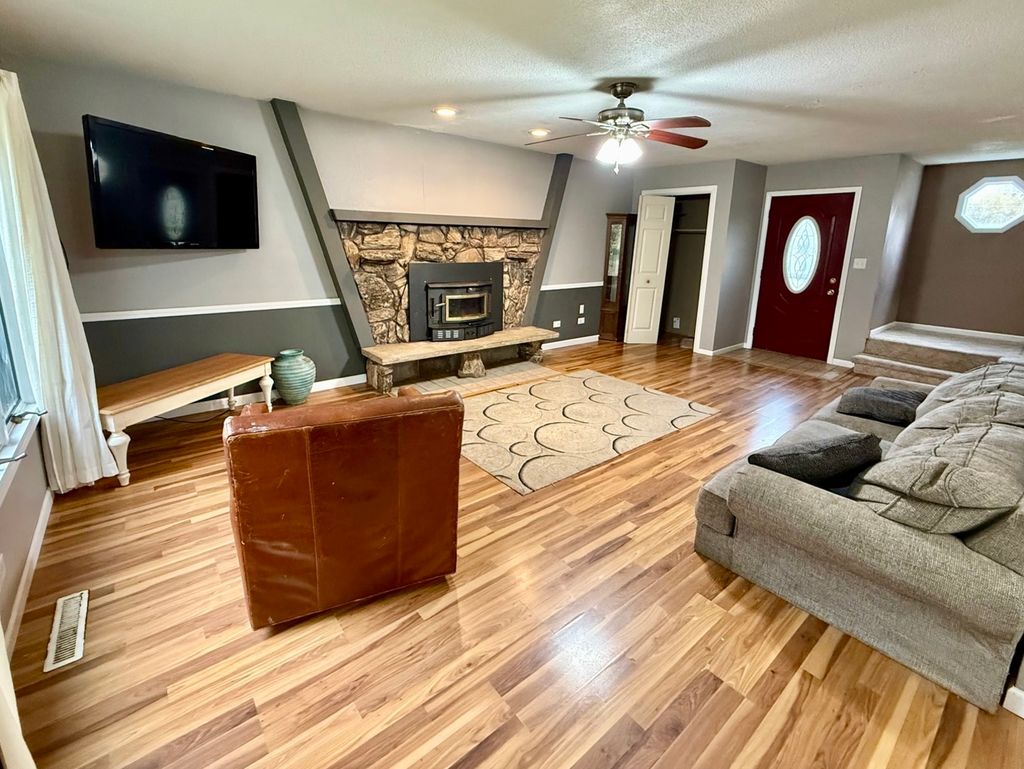 This 2 story home has 3 Bedrooms, 1.5 Bathrooms, a shed in the backyard, back patio, and a Full Basement. It also offers a wood burning fireplace in the Living Room, and also a heated 2 car garage. Property is Sold AS IS.
