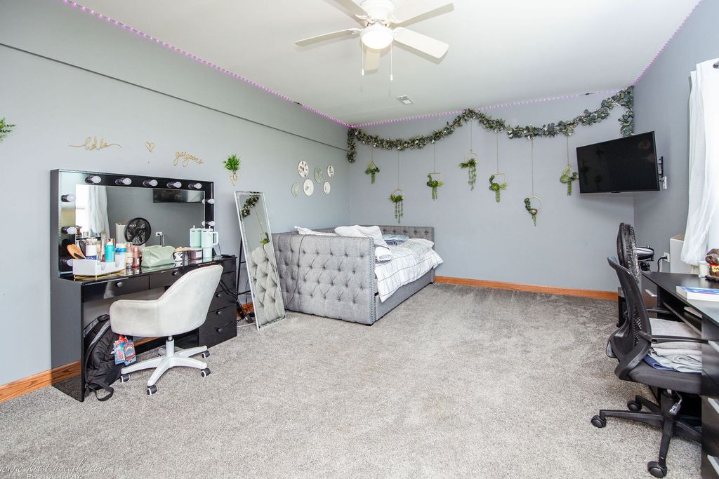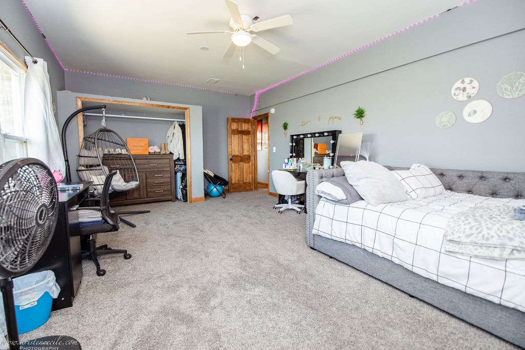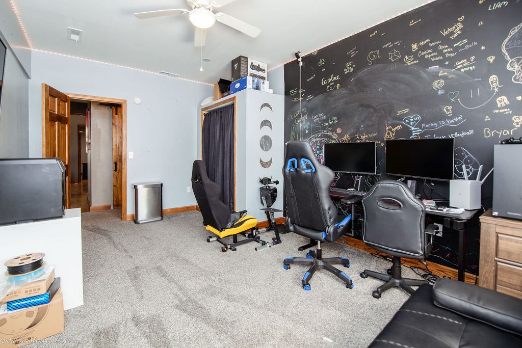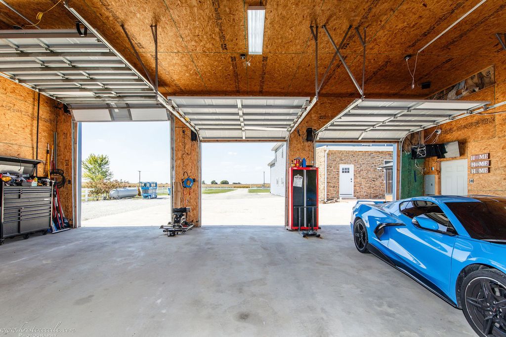 Nestled in the serene Green Garden Township within the top-rated Peotone school district, this fully remodeled estate in Peotone Schools offers over 4,000 square feet of luxurious living on a sprawling 2.5-acre lot. Perfect for at-home business owners, large families, tech enthusiasts, or equestrian lovers, this move-in-ready two-story home boasts up to 11 bedrooms (including three in a versatile barn) and 5 bathrooms, blending modern sophistication with rural charm. Step through a grand foyer with soaring 20-foot ceilings into a stunning dinning room, where a floor-to-ceiling flagstone fireplace with a gas starter creates a warm centerpiece. The space flows seamlessly into a spacious gourmet kitchen, featuring granite countertops, premium stainless steel appliances, a large island, pantry, and rich hardwood flooring. The 19x19 master suite is a private retreat with a tray ceiling, in-wall safe, lounge area, and a 19x15 walk-in closet with built-in shelves, complemented by a spa-inspired bathroom with two LED mirrors, a dedicated makeup sitting area with an LED mirror, dual vanities, soaker tub, and oversized shower. Entertainment abounds in the basement's theater room, equipped with Ashley chairs, a couch, a projector with a retractable screen, 5 speakers, and Google Assistant-controlled lighting, alongside a 10x10 kitchen with a fridge and popcorn station. A dedicated gym with included equipment adds to the home's versatility. Beyond the main house, a 60x40 insulated barn with a concrete floor, fire system, mini-splits, secure internet, bathroom, kitchen, and three potential bedrooms or offices offers endless possibilities for a home business or related living. A 40x15 storage barn with a mini-split and secure internet provides additional functionality. The freshly landscaped 2.5-acre lot features a covered patio with an outdoor TV, patio furniture, outdoor kitchen, speakers, and a hot tub enclosure, perfect for entertaining. Cutting-edge upgrades elevate this estate, including a $50,000 network that includes Ubiquiti network, 22 security cameras, plate readers, facial recognition, a monitored fire system ($39/month). Also, new west-facing windows. Located in unincorporated Will County with easy I-57 access to Chicago's south suburbs, shopping, and dining, this family-friendly estate benefits from Peotone schools (207U) and school bus service.