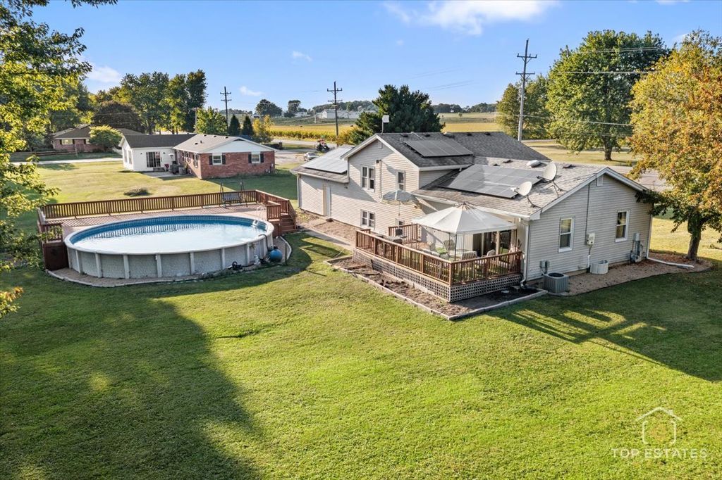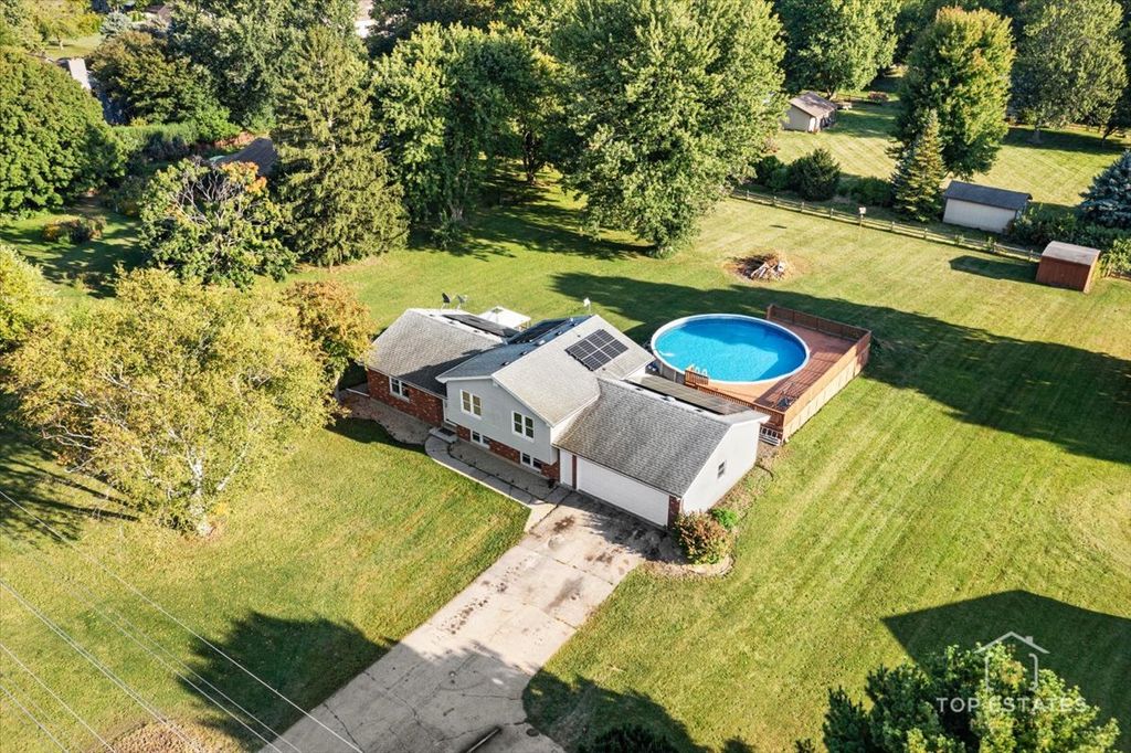 Welcome to 48W201 Keslinger Rd in Maple Park! This charming home sitting on nearly an acre of land was renovated with an open concept making a good space for family gatherings in the living room, dining room and kitchen area with SS appliances, the sliding glass door leads you to the deck with a pergola and the big pool with a beautiful deck to enjoy on summers, surrounded by the peaceful country living. 3 good size bedrooms in the upper level with a full bathroom, the English basement offers a large family room with a cozy fireplace or can be a 4th bedroom if need it, the second full bath for comfort and convenience, you'll also find the laundry room and a door that leads you to the two car garage and to the back yard. Eco-concius buyers will appreciate the solar panels already in place. Schools nearby excellent options Elementary, middle and highly-rated high school within 1 to 7 miles. Don't miss the opportunity to own this home!!