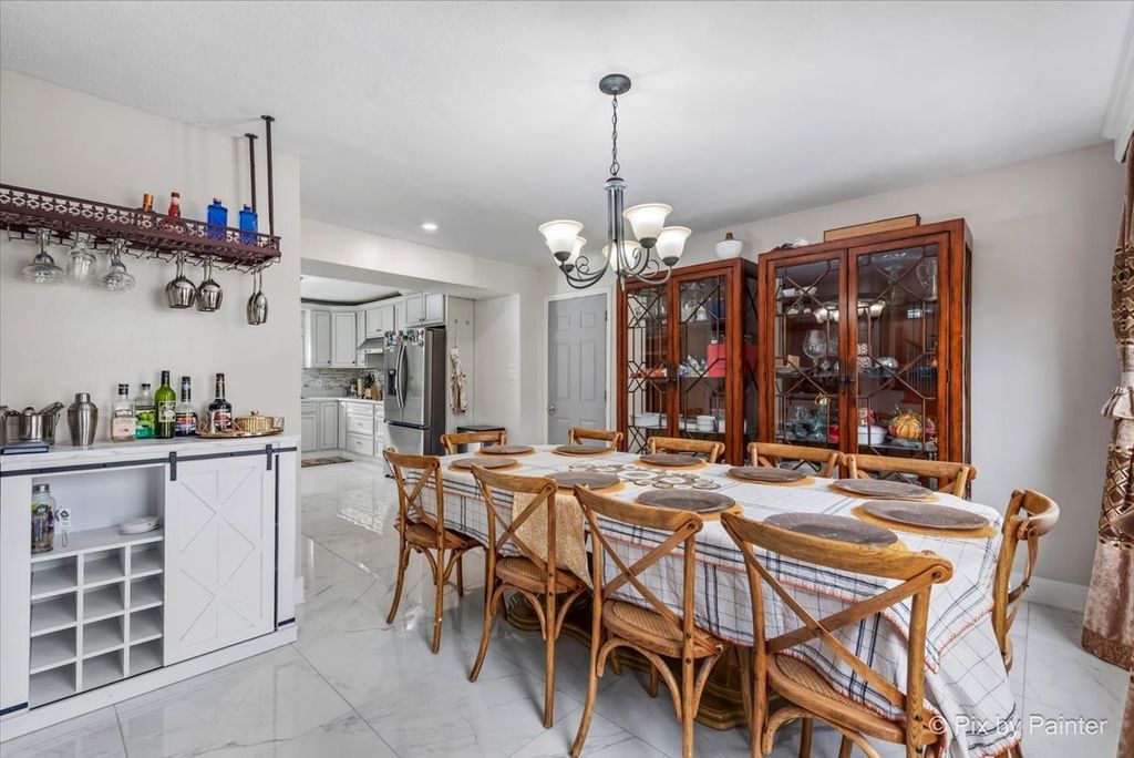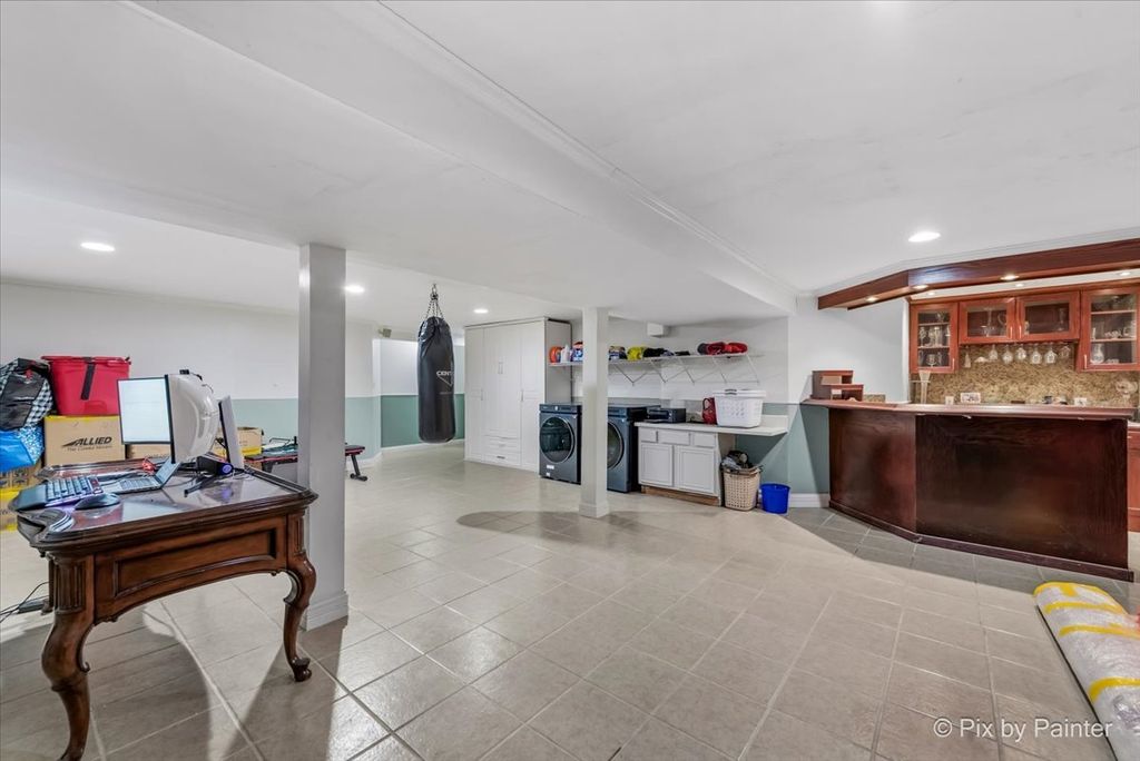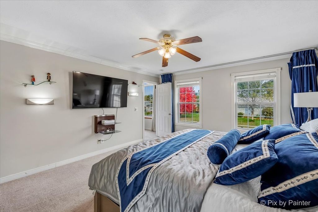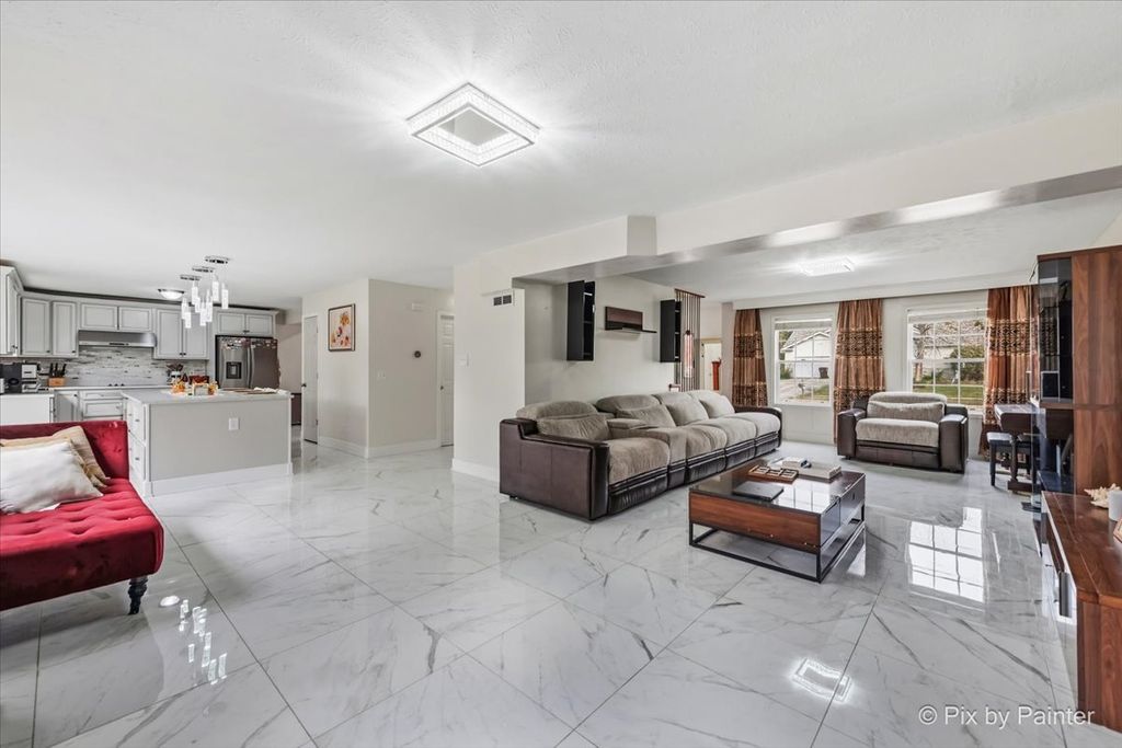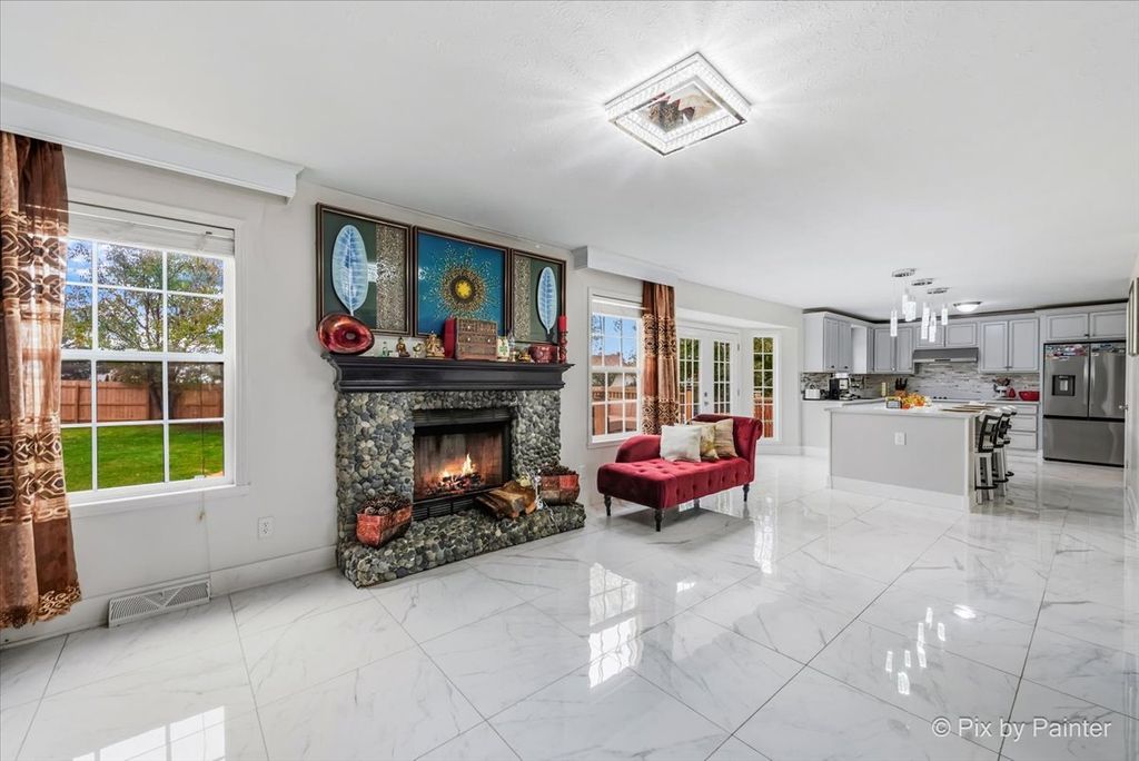 Prepare to be amazed! This stunning 5-bedroom Colonial with over 3,500 sq ft blends timeless elegance with modern luxury! Step inside to a breathtaking open floor plan featuring marble tile throughout the main level, a spacious family room with a wood-burning fireplace, and a designer kitchen that will leave you speechless-completely remodeled with 42" custom cabinets, quartz countertops, high-end stainless steel appliances, a marble backsplash, massive island with breakfast bar, and premium finishes top to bottom. The kitchen also features a brand-new double oven and refrigerator (2024). Upstairs you'll find 4 large bedrooms plus a versatile loft and two full baths, including a serene primary suite. The finished basement offers even more living space with a rec room, wet bar, full bath, office, laundry area, and a fifth bedroom-perfect for guests or extended family. Major updates include owned solar panels (2024), new roof (2023), full privacy fence (2025), fresh interior paint (2025), HVAC & water heater (2022), and a complete kitchen remodel (2023). Enjoy your private backyard oasis with a deck, patio, and 3.5-car insulated garage. Gorgeous curb appeal, concrete driveway, and a prime location close to I-90, top-rated schools, shopping, and dining. This home checks every box-move-in ready, energy-efficient, and absolutely beautiful inside and out! Don't wait-this one won't last!