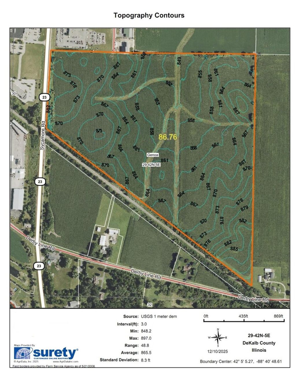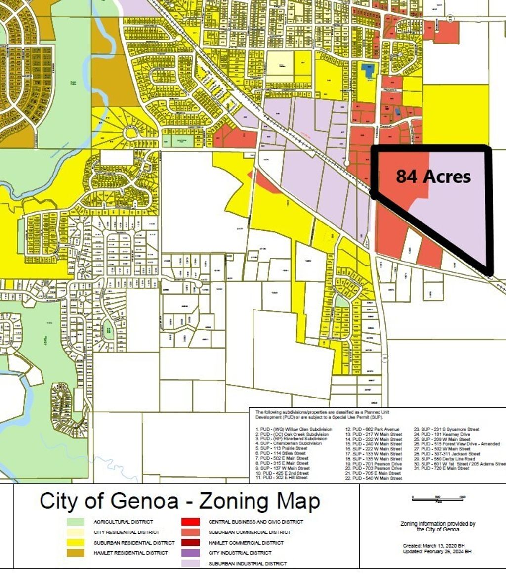 84 acres zoned industrial with frontage on State Rt 23 and potential rail access on Canadian National Railway and meets the preliminary site requirements for Canadian National. This site has sanitary sewer, water, storm sewer and natural gas are adjacent to site. There is 865' of frontage on State Rt 23 and access on north side of property off Pearson Dr. The property is located in a State and local enterprise zone with aggressive tax programs available. Ideally located on an all-weather road, the site is approximately 15 to 20 minutes away from I-88, I-39, and I-90 with 30 minute travel time to Rockford Airport and 60 Minutes from Chicago O'Hare International.