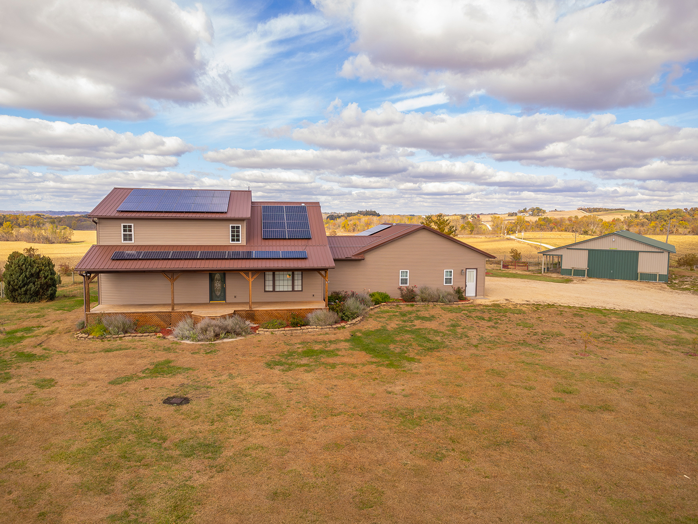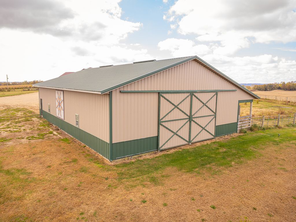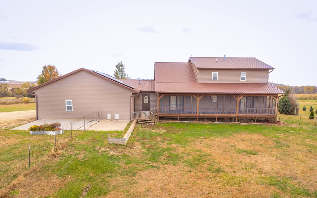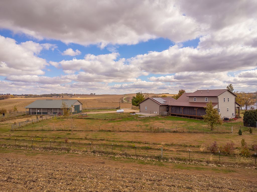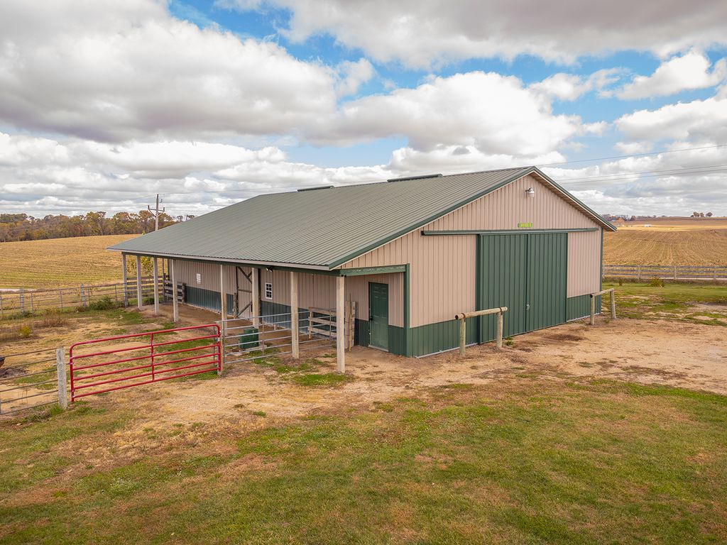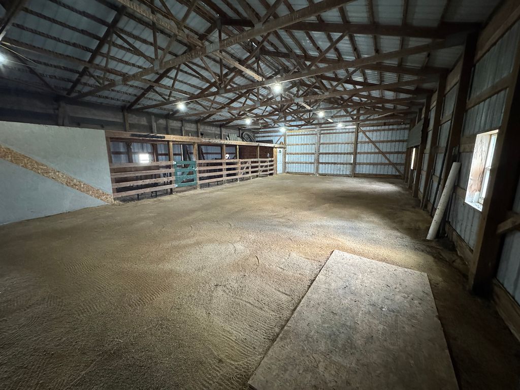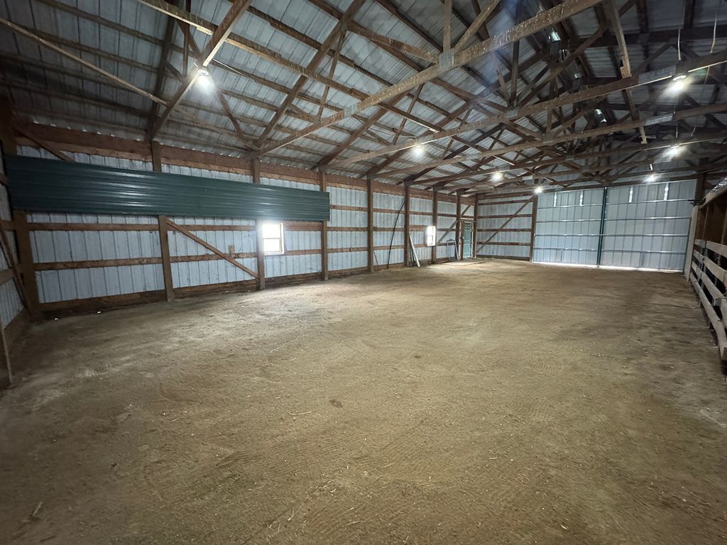 Discover the perfect blend of comfort, space, and country living on this picturesque 5.31-acre corner lot. This inviting two-story home offers 3 bedrooms, 2 full bathrooms, and 2 half baths designed with thoughtful details and modern updates throughout. The main level welcomes you with a spacious great room that seamlessly connects the living area, dining space with access to a screened-in rear deck, and a U-shaped kitchen complete with a walk-in pantry. The primary suite features his and hers walk-in closets, private deck access, and a newer walk-in shower for a touch of luxury. A convenient main-floor laundry with half bath, plus an additional half bath off the hallway, adds everyday ease. An open staircase leads to the upper-level loft, offering a cozy family room area, full bath, and two guest bedrooms. The lower level provides even more potential with a nearly finished recreation room (drywalled and awaiting a drop ceiling), two storage/mechanical rooms, and a stubbed-in full bathroom ready for completion. Energy efficiency was a priority in this home, featuring solar panels, new furnace and central air (2023), updated appliances (2023 - 2025) and siding and windows in 2024. The oversized three-stall attached garage offers cabinet storage, workspace, openers on both doors and heated floor. For equestrian enthusiasts or hobby farmers, the 40'x60' pole barn includes stalls, a tack room, and an 8'x60' lean-to, plus a fenced corral area ready for your animals. Whether you are dreaming of a peaceful country retreat, hobby farm, or your next family home, this property delivers space, function, and flexibility in a serene rural setting. This property is equipped with solar panels. The Buyer must agree to take all steps necessary to complete any documentation and submit to SunStrong (formally SunPower) the required paperwork for the assignment and assumption of the solar panel lease needed in a timely manner. Therefore, Buyer must agree to assume all of Seller's rights and obligations under the terms of the agreement.